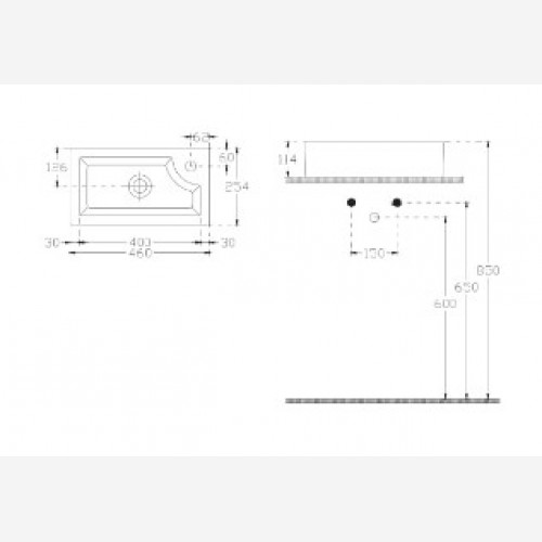 Νιπτήρας επικαθήμενος ή επίτοιχος με οπή μπαταρίας δεξιά