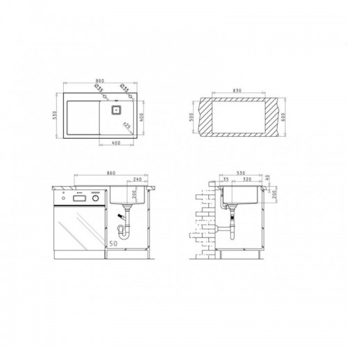 ·        Διαστάσεις Νεροχύτη: 860 x 530mm