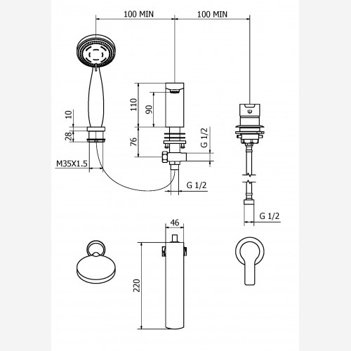 Μπαταρία λουτρού επικαθήμενη 3 οπών με ρουξούνι MOOD