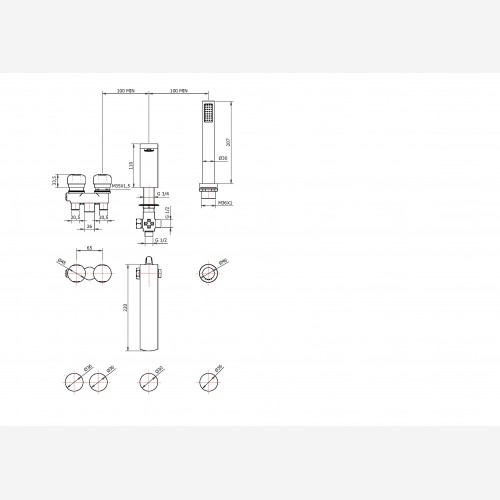 Μπαταρία λουτρού επικαθήμενη 4 οπών με ρουξούνι MOOD