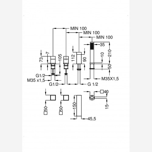 Μπαταρία λουτρού επικαθήμενη 4 οπών