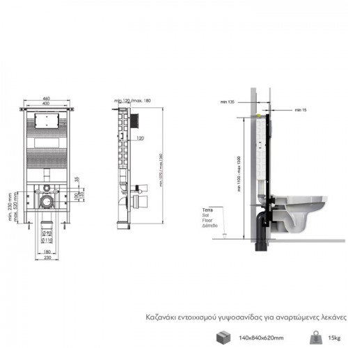 - Καζανάκι εντοιχισμού γυψοσανίδας για κρεμαστές λεκάνες