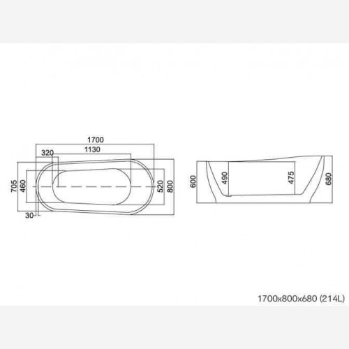 Ακρυλικό μπάνιο ελεύθερης τοποθέτησης κατασκευής τύπου «sandwich» επενδυμένο εσωτερικά και εξωτερικά με υψηλής ποιότητας ακρυλικό φύλλο 5mm.