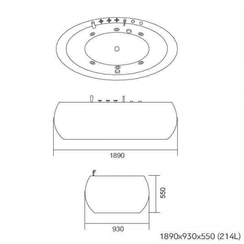 • Διαθέτει σύστημα υδρομασάζ με 6 jets Φ85, πνευματικά χειριστήρια και αυτόματη βαλβίδα