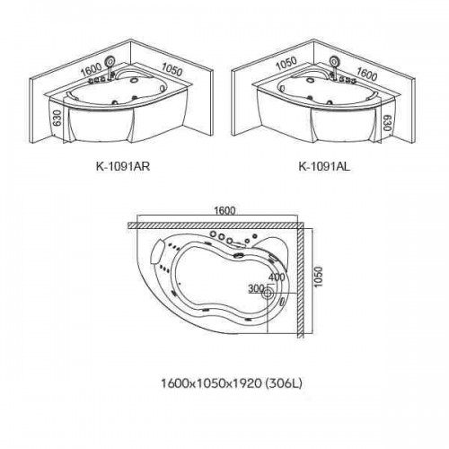 - Το υδρομασάζ μπορεί να τοποθετηθεί και σε αριστερή γωνία και δεξιά γωνία