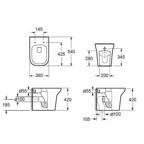 Συμπαγής λεκάνη με οριζόντια έξοδο Πισωστόμια Μήκος : 61 cm Kαπάκι βαρέως τύπου Soft ..