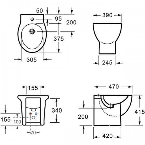 Μπιντές δαπέδου BTW (Το πίσω μέρος εφάπτεται με ακρίβεια στον τοίχο)