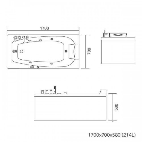 - Το σύστημα υδρομασάζ φέρει αντλία 1HP/750W, 6 jumbo jets Ø85