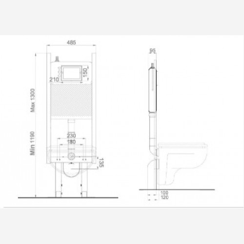Ισχυρό Μεταλλικό πλάισιο στήριξης καζανακίου για λεκάνες εντοιχισμού με επιδαπέδια βάση και ρυθμιζόμενη καθ ύψος. Ιδανικό για τοποθέτηση σε Σοβά, Τούβλο και Γυψοσανίδα. ΤΕΧΝΙΚΑ ΧΑΡΑΚΤΗΡΙΣΤΙΚΑ