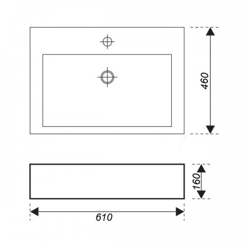 Νιπτήρας επικαθήμενος παραλληλόγραμμος χωρίς οπή για μπαταρίαΔιαστάσεις 61 X 33.5 X 11 CMΛευκή πορσε..