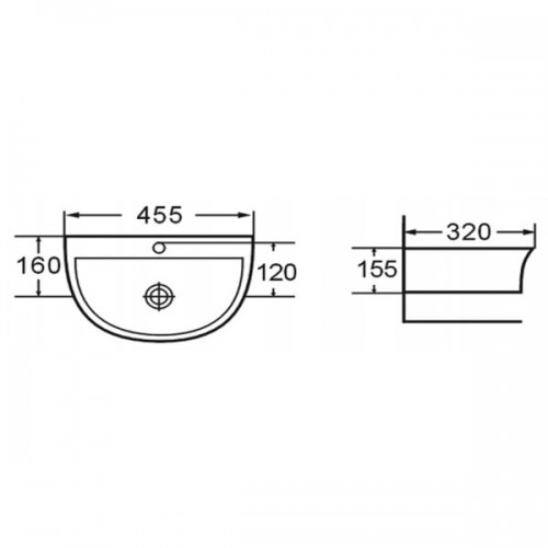 Νιπτήρας επικαθήμενος-επίτοιχος αριστερόςΔιαστάσεις 80 X 35 CMΔιατίθεται και σε δεξίΛευκή πορσελάνη..