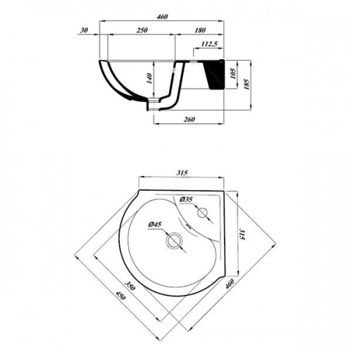 Νιπτήρας επικαθήμενος-επίτοιχος αριστερόςΔιαστάσεις 80 X 35 CMΔιατίθεται και σε δεξίΛευκή πορσελάνη..