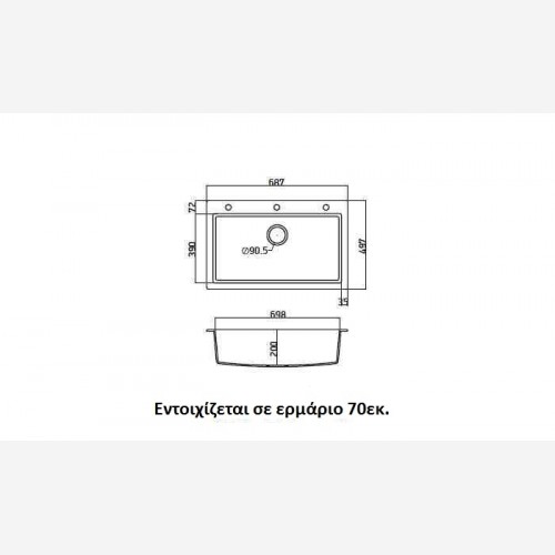 - Διαστάσεις Νεροχύτη: 70 × 50 cm