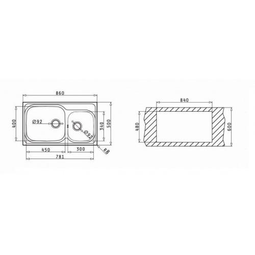 Διαστάσεις Νεροχύτη: 860 x 500mm