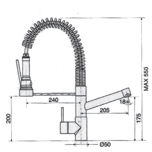 Αναμεικτική μπαταρία κουζίνας με σωληνωτό σπαστό ρουξούνιΔιάμετρος βάσης 50 mmΠεριστρεφόμενο ρουξούνι 360°Με κεραμικό δίσκο