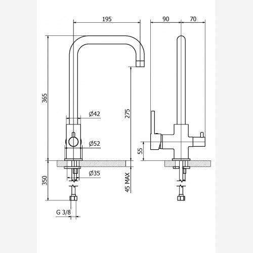 Μπαταρία νεροχύτου μίξεως 3 εισόδων με ξεχωριστή έξοδο για πόσιμο νερό