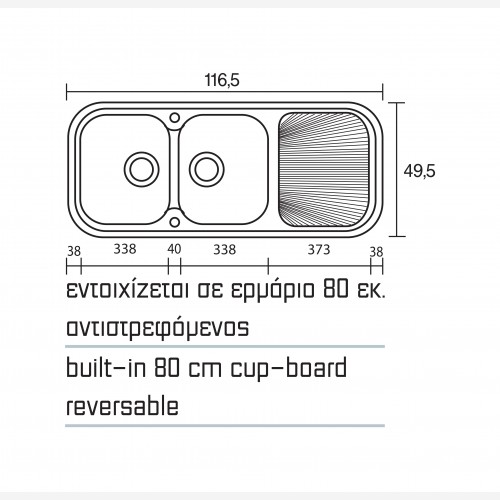 - Διαστάσεις Νεροχύτη: 116 × 50 cm