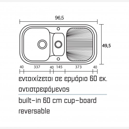 - Εντοιχίζεται σε ερμάριο 60εκ.