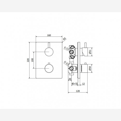 Μπαταρία λουτρού θερμοστατική εντοιχισμού απο 1 εως 5 εξόδους κάθετη